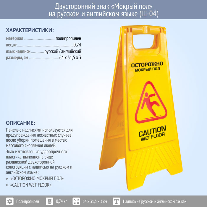 Знак «Мокрый пол» на русском и английском языке (Ш-04) в Москве купить