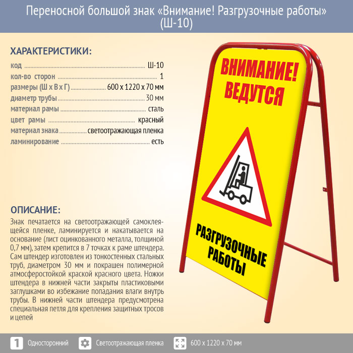 Переносной большой знак «Внимание! Разгрузочные работы» (Ш-10, двусторонний, светоотражающая пленка) в Москве купить