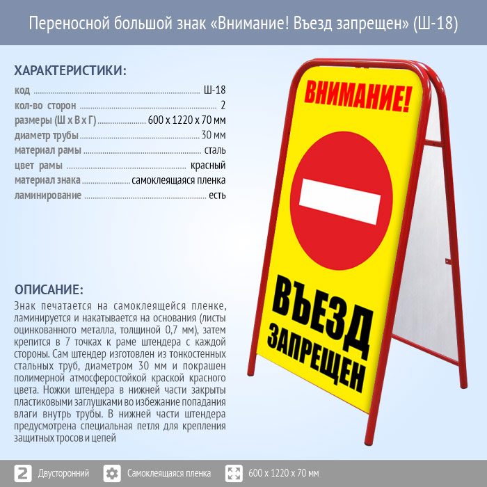 Переносной большой знак «Внимание! Въезд запрещен» (Ш-18, двусторонний, самоклеящаяся пленка) в Москве купить