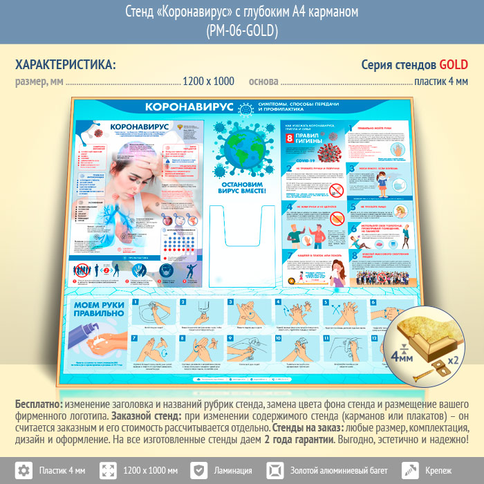 Стенд «Коронавирус» с глубоким А4 карманом (PM-06-GOLD) в Москве купить