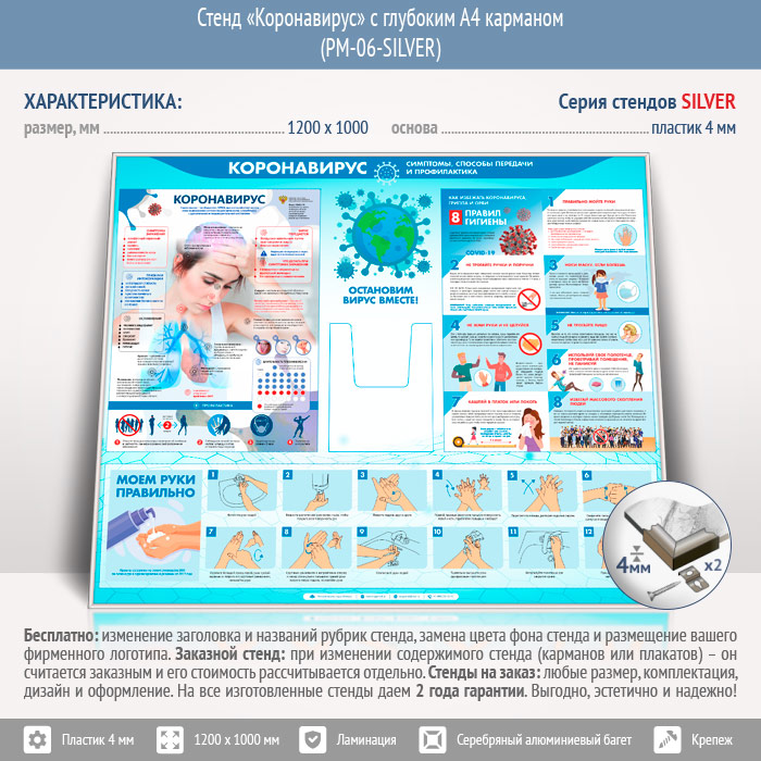 Стенд «Коронавирус» с глубоким А4 карманом (PM-06-SILVER) в Москве купить