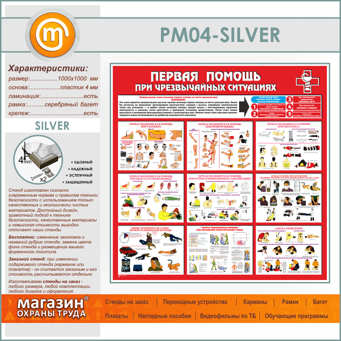 Стенд «Первая помощь при чрезвычайных ситуациях» (PM-04-SILVER) в Москве купить
