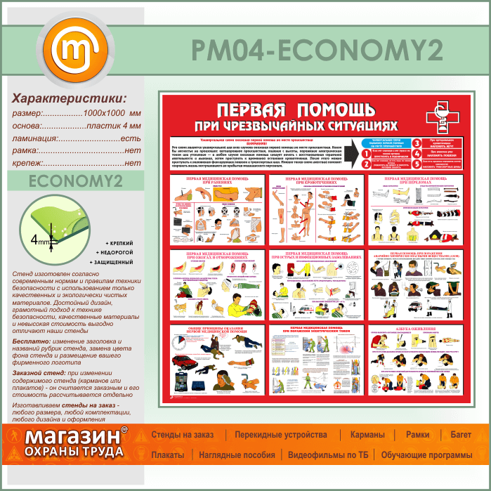 Стенд «Первая помощь при чрезвычайных ситуациях» (PM-04-ECONOMY2) в Москве купить