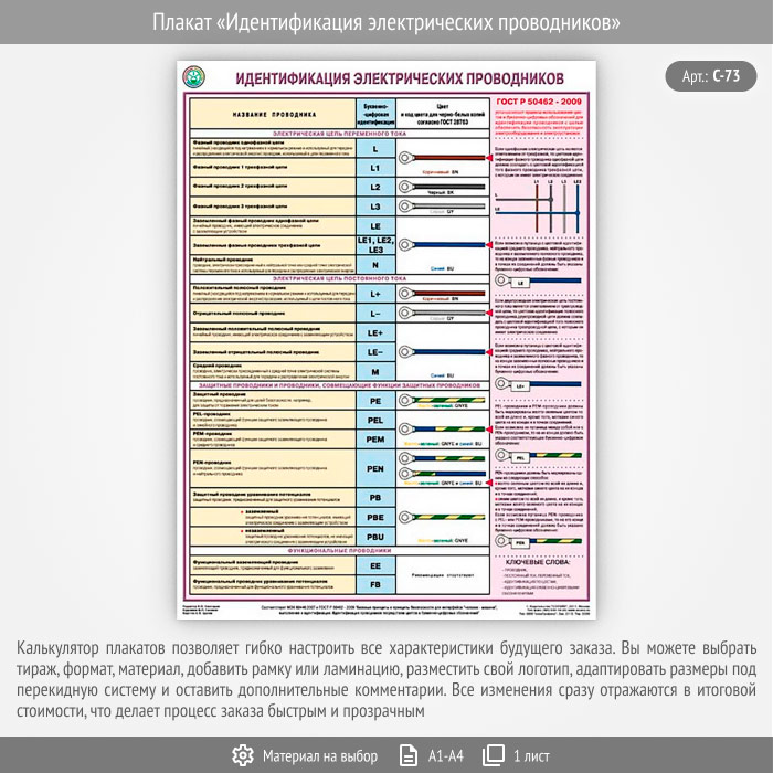Плакат «Идентификация электрических проводников» – достойное качество и полезная информация по приемлемой цене