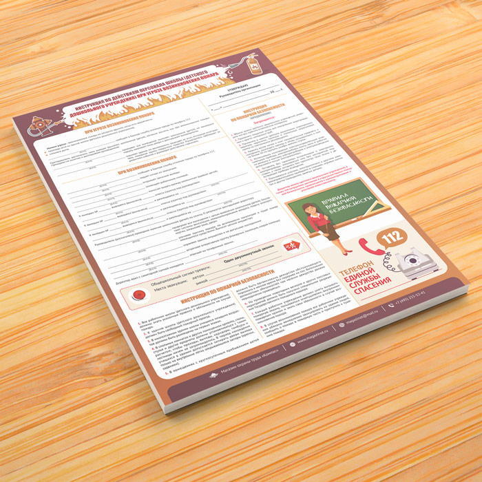Плакат «Инструкция по действиям персонала школы (детского дошкольного учреждения) при угрозе и возникновении пожара» как уже видно из названия содержит одноименную инструкцию