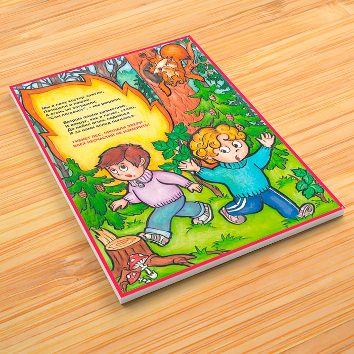 Комплект плакатов «Детям о правилах пожарной безопасности» из 10 листов поведает в стихах и красочных иллюстрациях о десяти основных правилах, которые дети должны знать о пожарной безопасности
