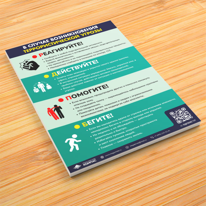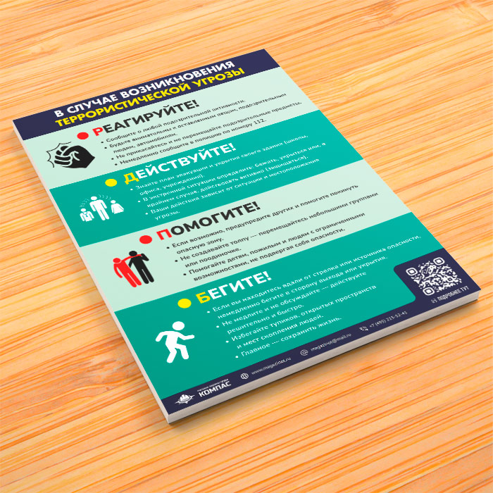 Плакат «В случае возникновения террористической угрозы» (М-109, ламинированная бумага, А3, 1 лист) в Москве купить