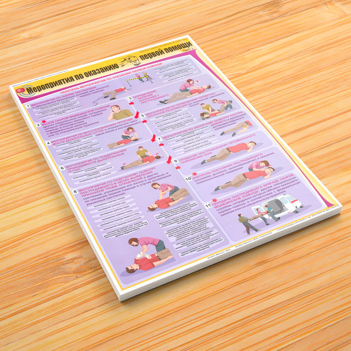 Плакаты «Мероприятия по оказанию первой помощи» (В-09, ламинир. бумага, А2, 2 листа)
