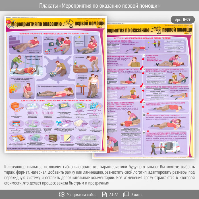 Плакаты «Мероприятия по оказанию первой помощи» (В-09, 2 листа)