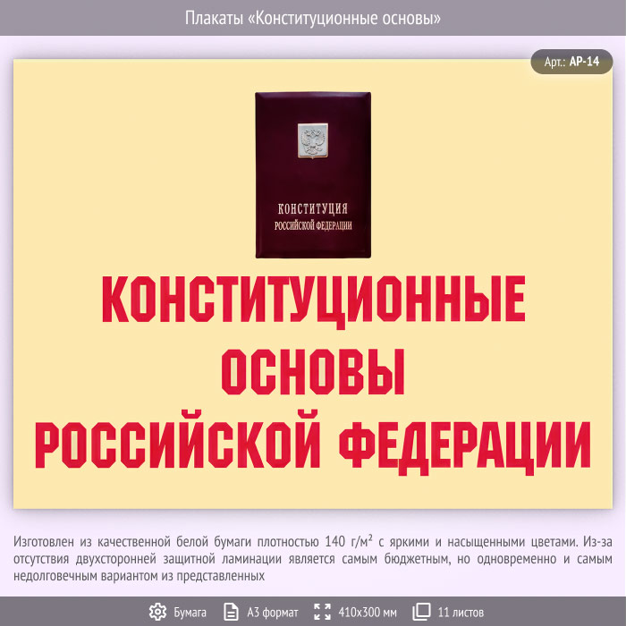 Плакаты «Конституционные основы» (АР-14, бумага, А3, 11 листов) в Москве купить