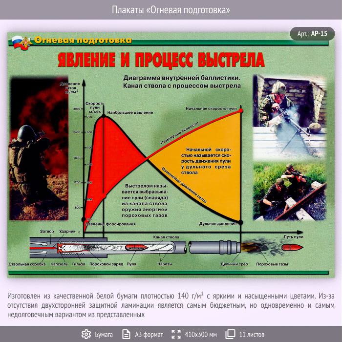 Плакаты «Огневая подготовка» (АР-15, бумага, А3, 11 листов) в Москве купить
