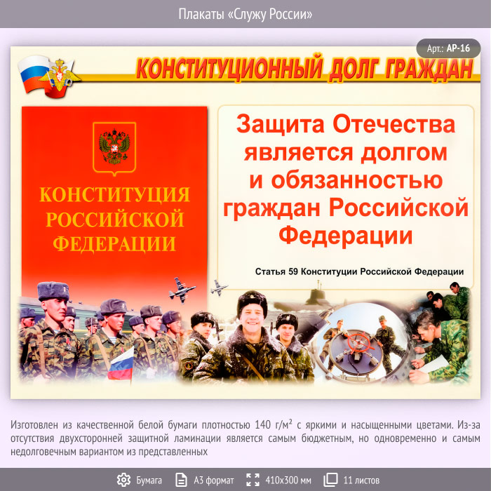 Плакаты «Служу России» (АР-16, бумага, А3, 11 листов) в Москве купить