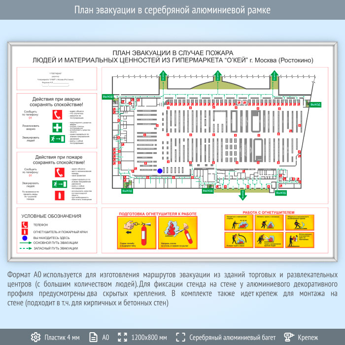 План эвакуации в серебряной алюминиевой рамке (А0 формат) в Москве купить