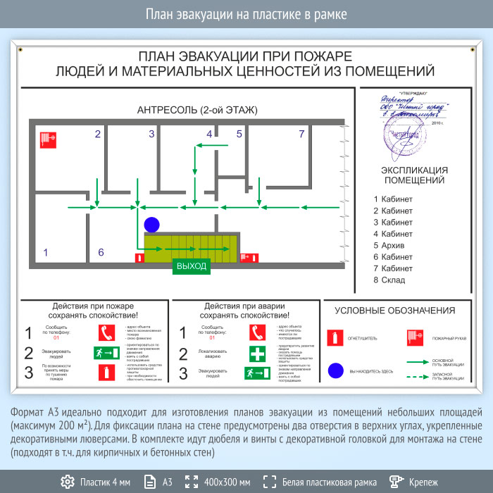 План эвакуации на пластике в рамке (А3 формат) в Москве купить