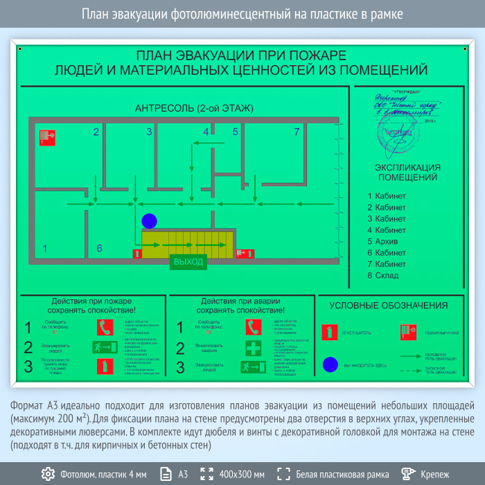 План эвакуации фотолюминесцентный на пластике в рамке (А3 формат) в Москве купить