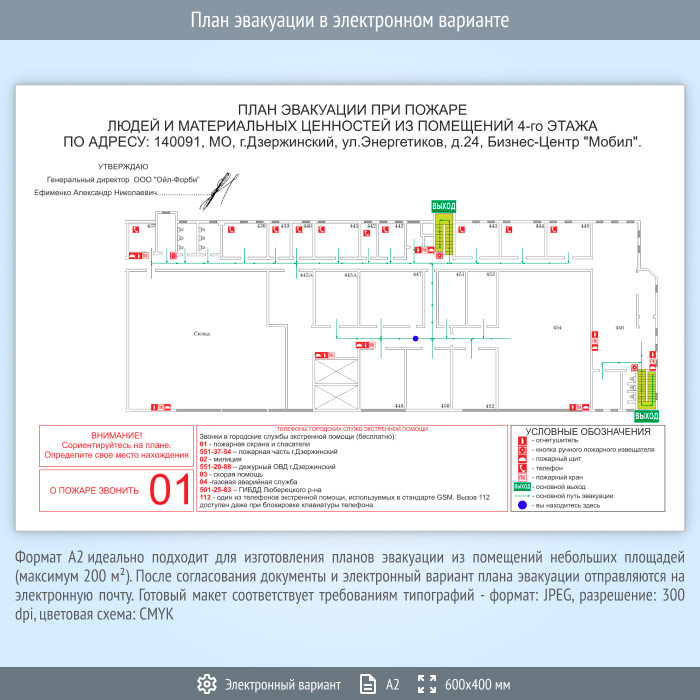 План эвакуации в электронном варианте (А2 формат) в Москве купить