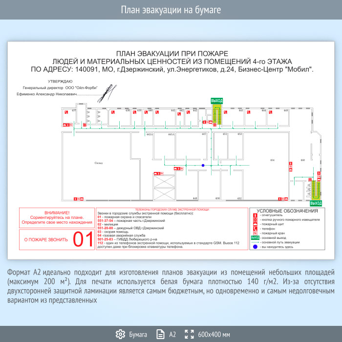 План эвакуации на бумаге (А2 формат) в Москве купить