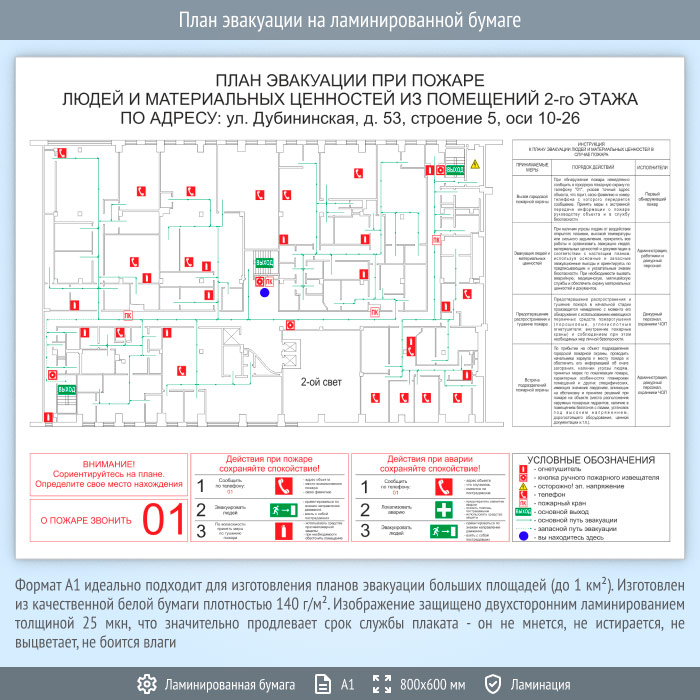План эвакуации на ламинированной бумаге (А1 формат) в Москве купить