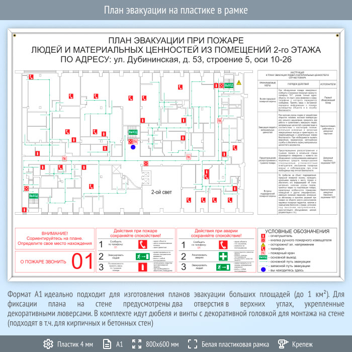 План эвакуации на пластике в рамке (А1 формат) в Москве купить