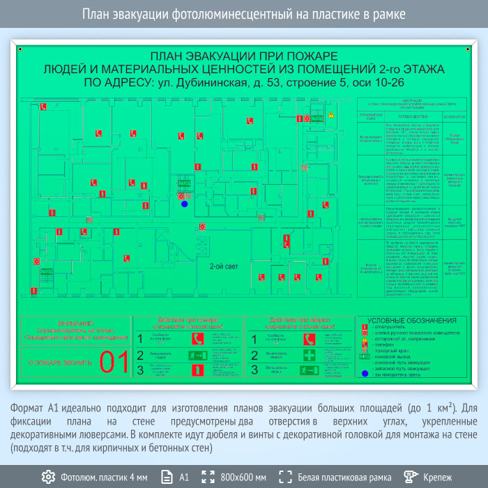 План эвакуации фотолюминесцентный на пластике в рамке (А1 формат) в Москве купить