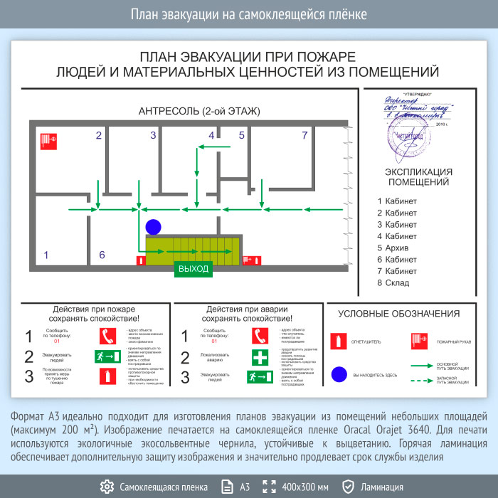 План эвакуации на самоклеящейся плёнке (А3 формат) в Москве купить