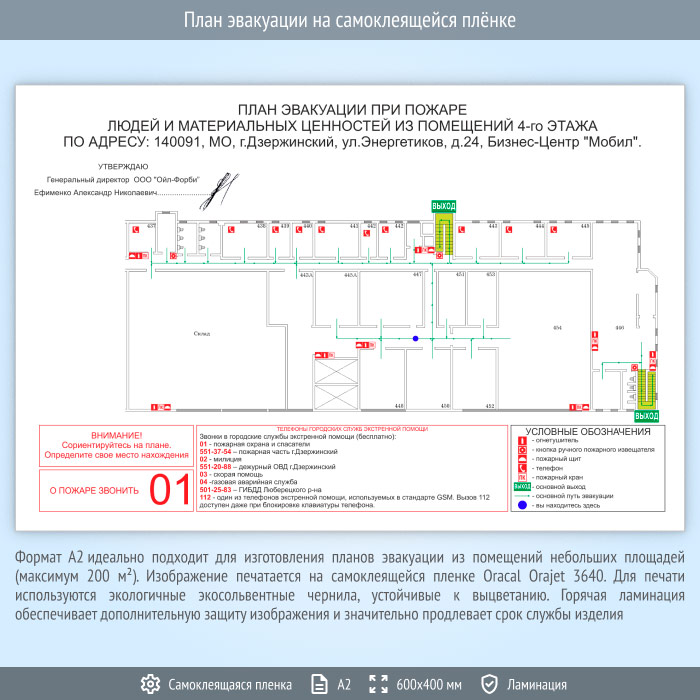 План эвакуации на самоклеящейся плёнке (А2 формат) в Москве купить