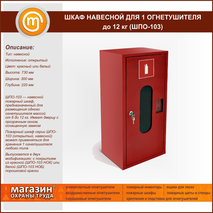 Шкаф пожарный ШПО-103 навесной для 1 огнетушителя до 12 кг в Москве купить