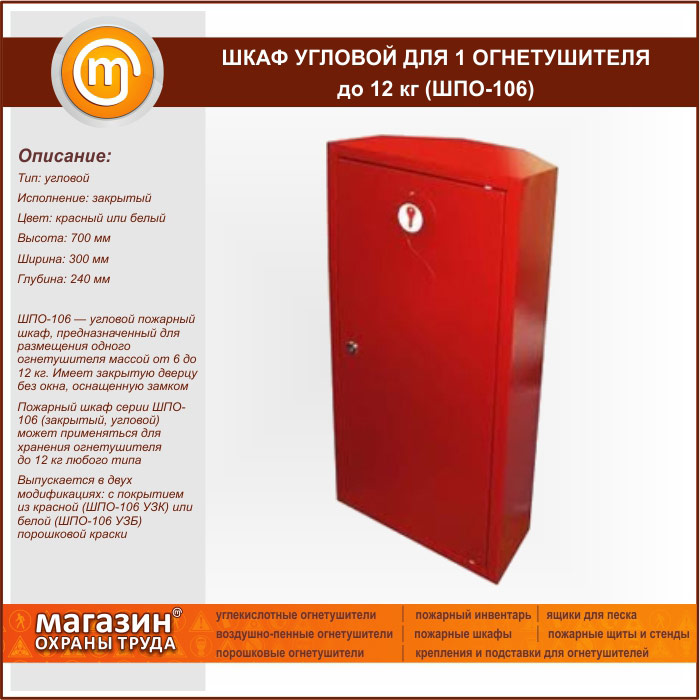 Шкаф пожарный ШПО-106 угловой для 1 огнетушителя до 12 кг в Москве купить