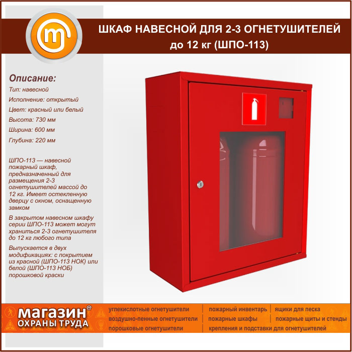 Шкаф пожарный ШПО-113 навесной для 2-3 огнетушителей до 12 кг в Москве купить