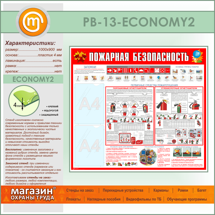 Стенд «Пожарная безопасность» с 2 карманами (PB-13-ECONOMY2) в Москве купить