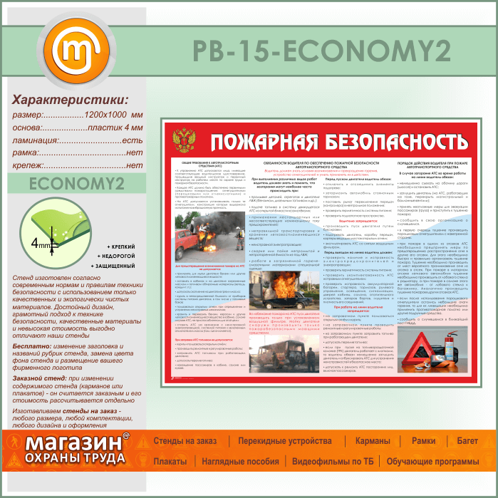 Стенд «Пожарная безопасность на автотранспорте» (PB-15-ECONOMY2) в Москве купить