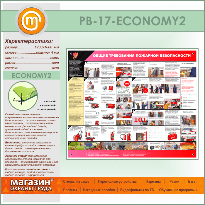 Стенд «Общие требования пожарной безопасности» (PB-17-ECONOMY2) в Москве купить