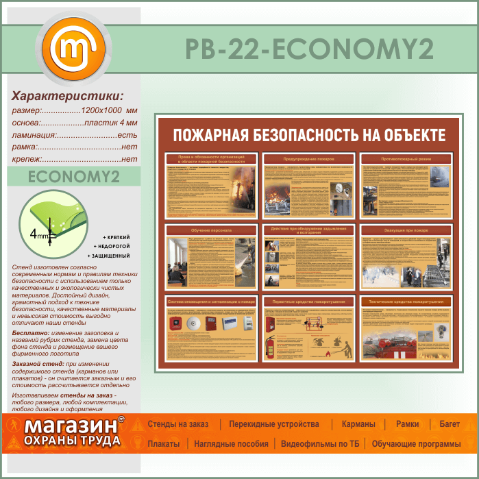 Стенд «Пожарная безопасность на объекте» (PB-22-ECONOMY2) в Москве купить