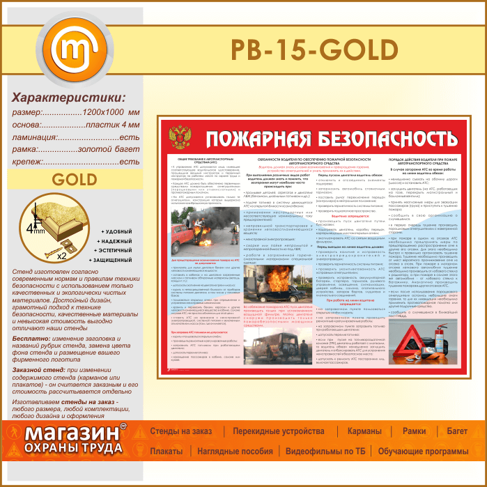 Стенд «Пожарная безопасность на автотранспорте» (PB-15-GOLD) в Москве купить
