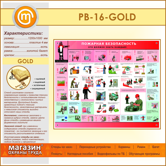 Стенд «Пожарная безопасность. Это должен знать каждый» (PB-16-GOLD) в Москве купить