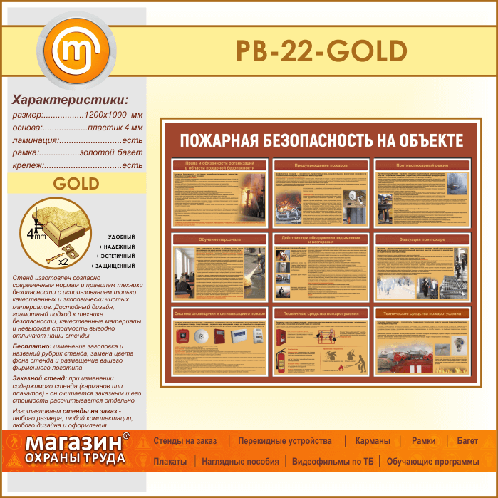 Стенд «Пожарная безопасность на объекте» (PB-22-GOLD) в Москве купить