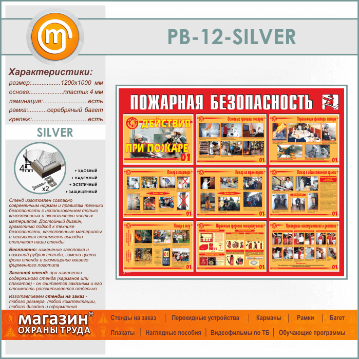 Стенд «Пожарная безопасность. Действия при пожаре» (PB-12-SILVER) в Москве купить
