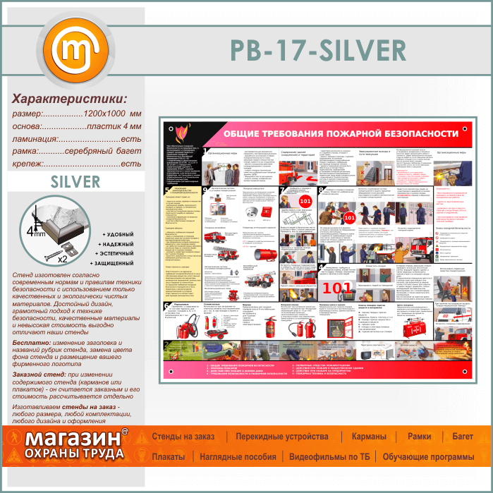 Стенд «Общие требования пожарной безопасности» (PB-17-SILVER) в Москве купить