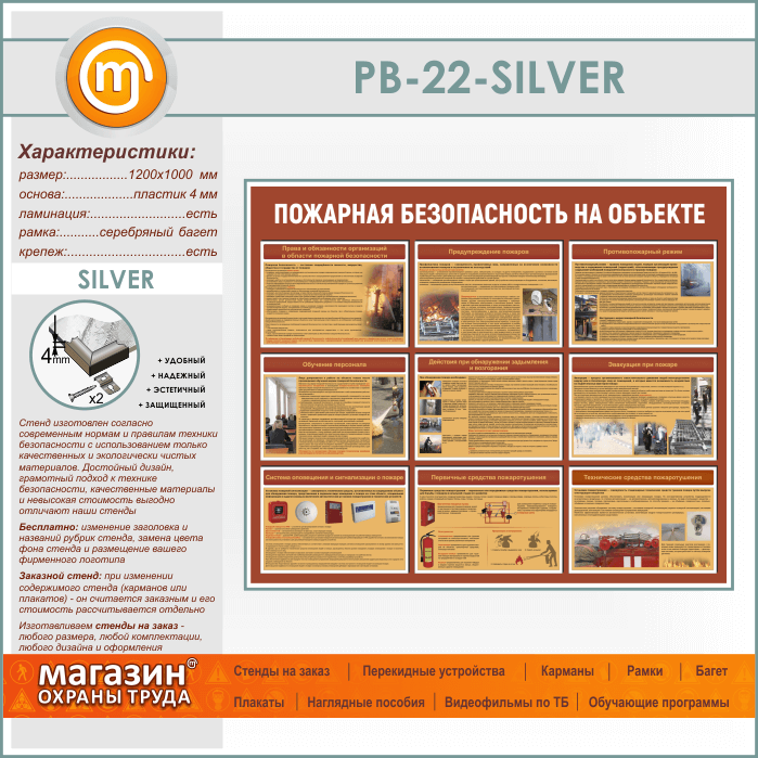 Стенд «Пожарная безопасность на объекте» (PB-22-SILVER) в Москве купить