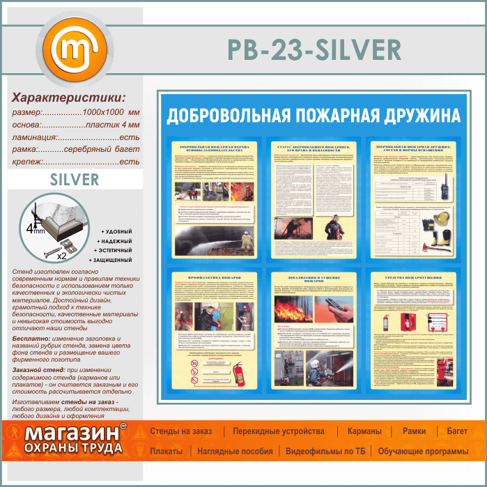 Стенд «Добровольная пожарная дружина» (PB-23-SILVER) в Москве купить