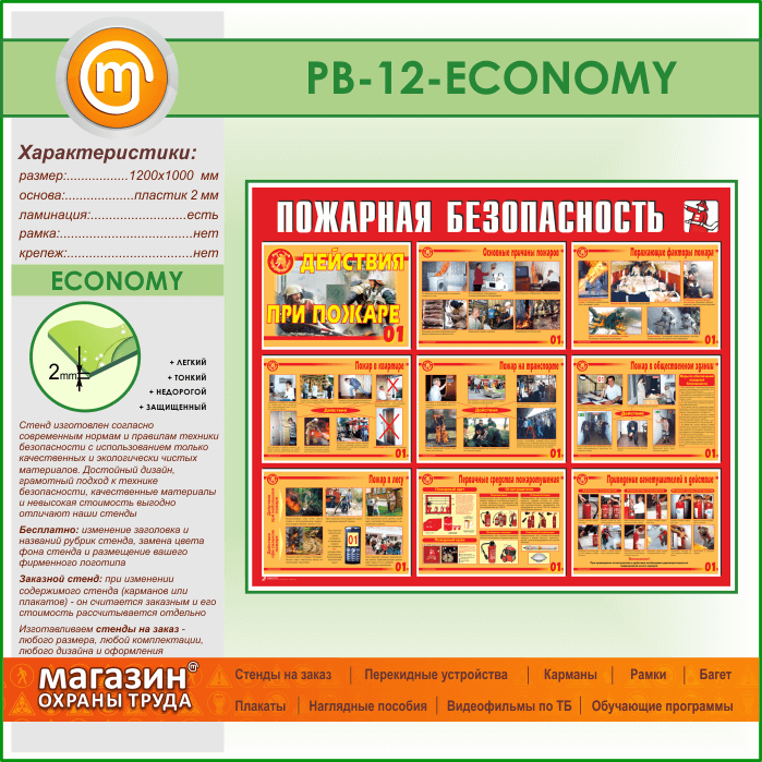 Стенд «Пожарная безопасность. Действия при пожаре» (PB-12-ECONOMY) в Москве купить