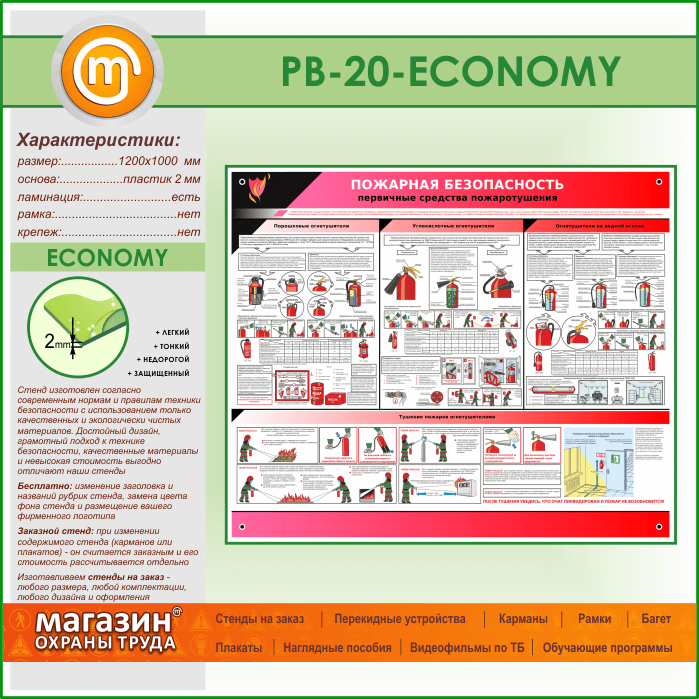 Стенд «Пожарная безопасность. Первичные средства пожаротушения» (PB-20-ECONOMY) в Москве купить