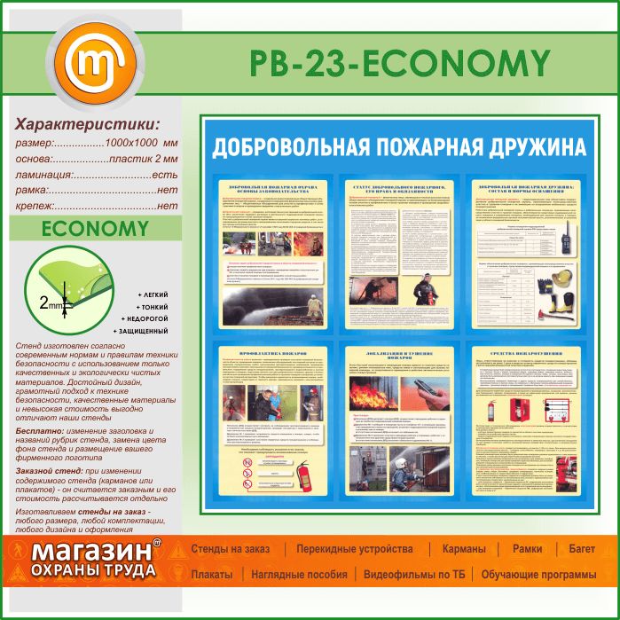 Стенд «Добровольная пожарная дружина» (PB-23-ECONOMY) в Москве купить