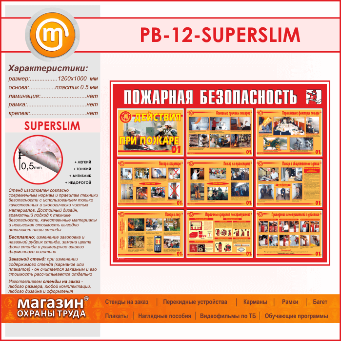 Стенд «Пожарная безопасность. Действия при пожаре» (PB-12-SUPERSLIM) в Москве купить