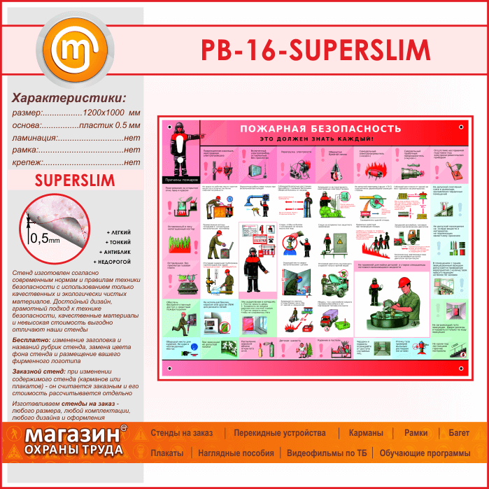 Стенд «Пожарная безопасность. Это должен знать каждый» (PB-16-SUPERSLIM) в Москве купить