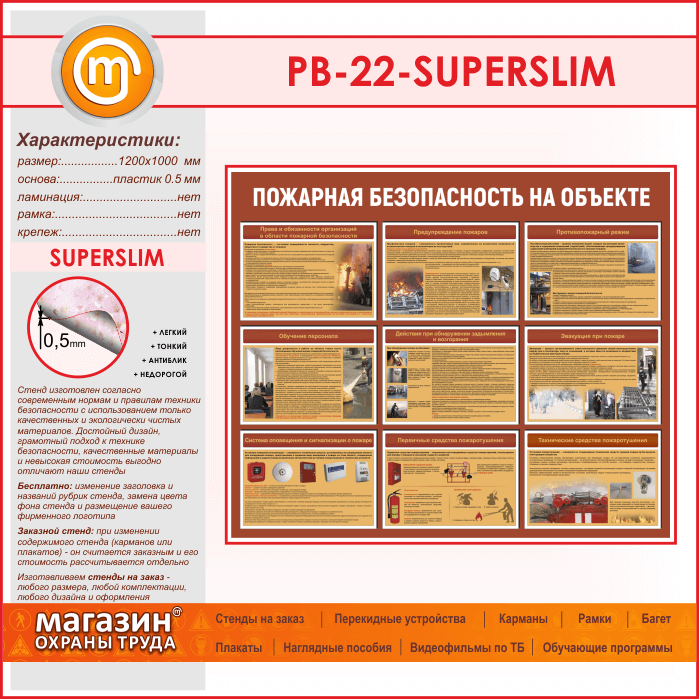 Стенд «Пожарная безопасность на объекте» (PB-22-SUPERSLIM) в Москве купить