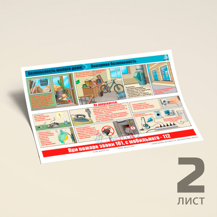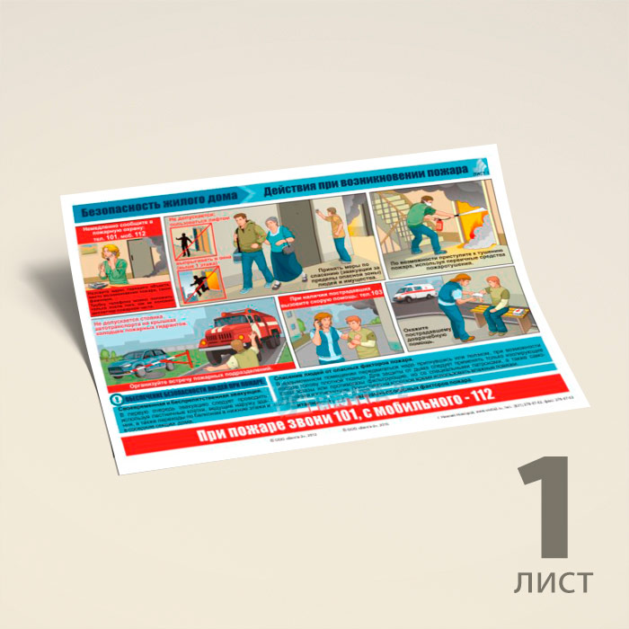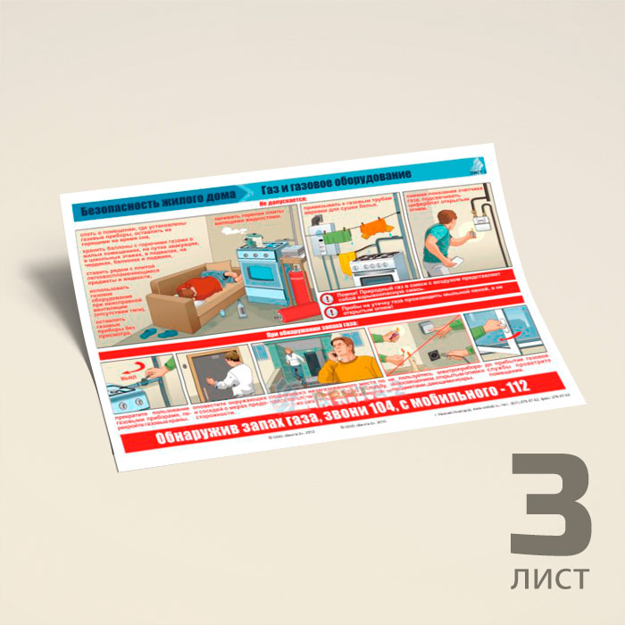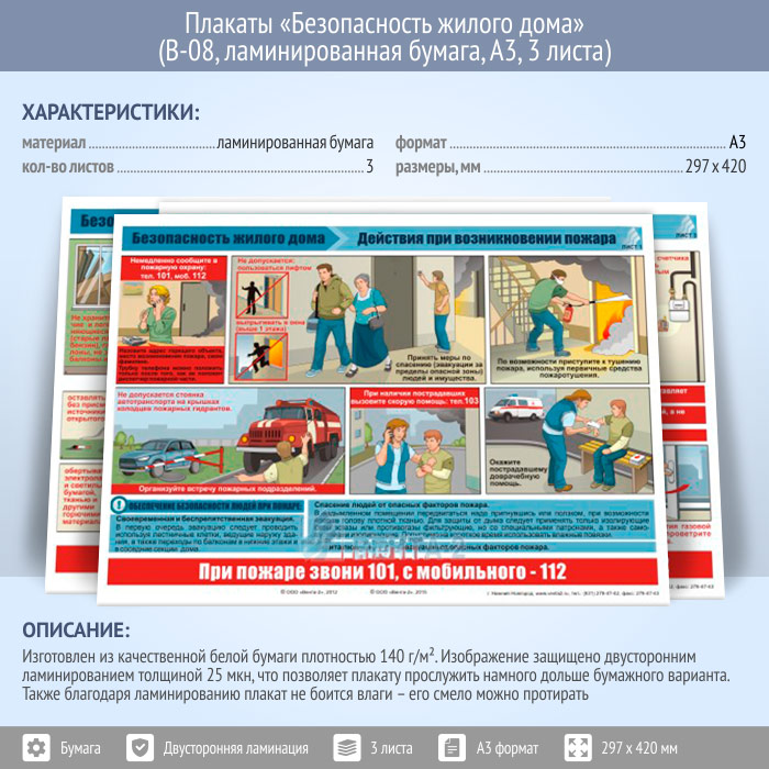 Плакаты «Безопасность жилого дома» (пожарная безопасность, газ и газовое оборудование, действия при возникновении пожара) (В-08, ламинированная бумага, А3, 3 листа) в Москве купить