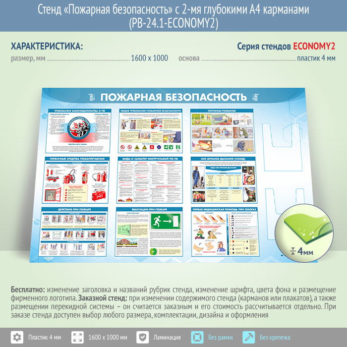 Стенд «Пожарная безопасность» с 2-мя глубокими А4 карманами (PB-24.1-ECONOMY2) в Москве купить
