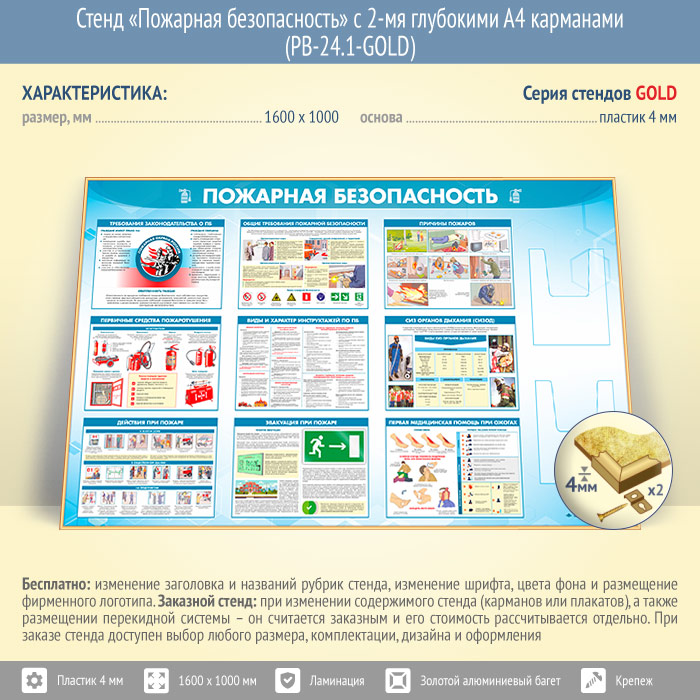 Стенд «Пожарная безопасность» с 2-мя глубокими А4 карманами (PB-24.1-GOLD) в Москве купить