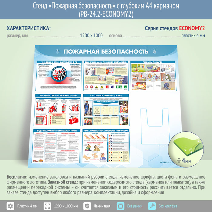 Стенд «Пожарная безопасность» с глубоким А4 карманом (PB-24.2-ECONOMY2) в Москве купить
